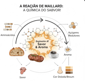 Longe de ser apenas um “queimado”, Maillard é uma complexa dança molecular que cria centenas de novos compostos, responsáveis por sabores, aromas e cores que amamos.