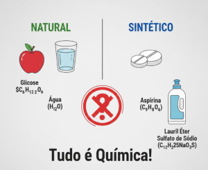 Natural vs. Sintético: Não importa se a substância vem de uma planta (natural) ou é criada em um laboratório (sintética); ambas são compostos químicos. O veneno de uma cobra é natural e extremamente químico. A aspirina é sintética e um salva-vidas.
